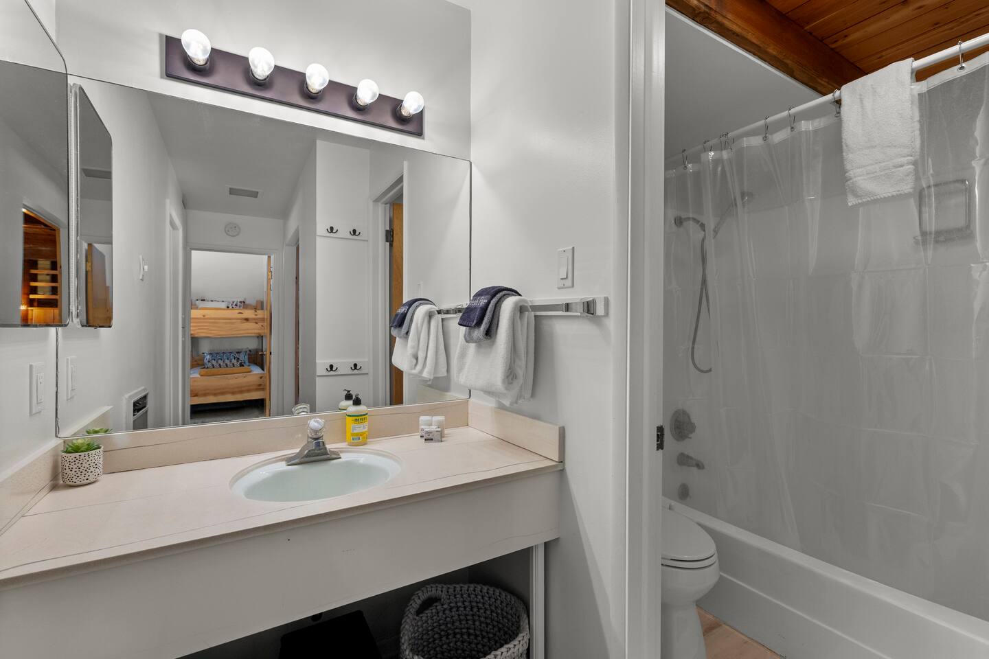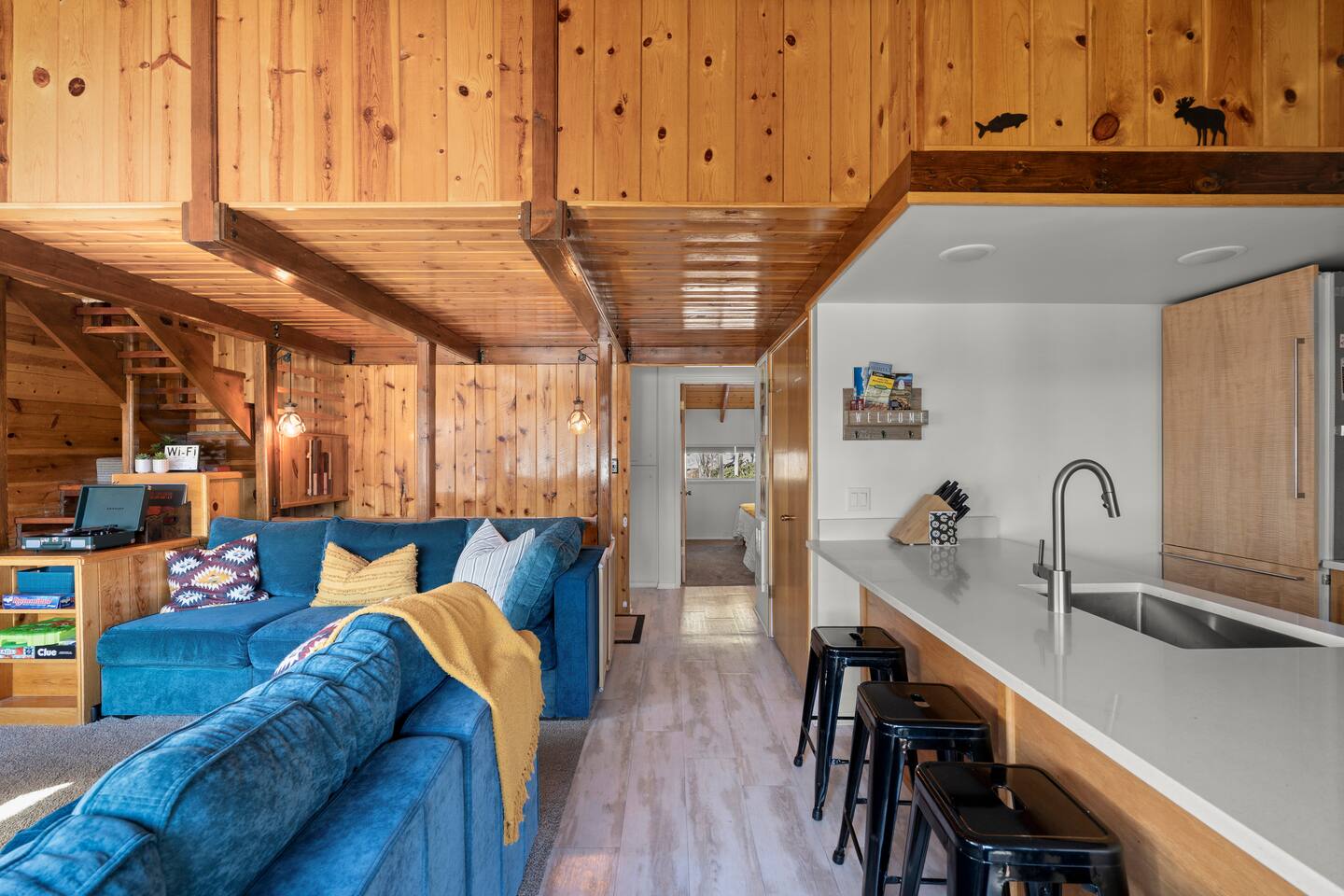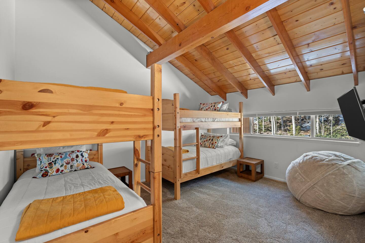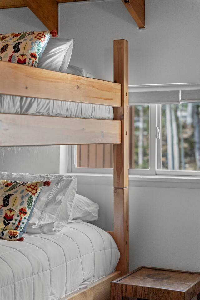 Entrance: Welcome! Step inside on the ground level and head up the quarter-turn staircase. You'll find convenient storage along the way for your shoes, ski gear, and other belongings. Main Level: Relax in the cozy living room with a huge Lovesac couch and fireplace (Electric converted). Four large windows offer stunning mountain views, and a balcony provides access to crisp mountain air. Bring and enjoy your favorite vinyl on the record player, or browse our selection. A mounted 4K TV is ready for your viewing pleasure. The kitchen features modern appliances and a newly installed large island. The master bedroom includes a king-size bed and a smart TV, while the bunk room, furnished with two bunk beds and a smart TV, is perfect for children. The main level also offers a convenient split bathroom layout, with the sink and mirror in a separate area from the toilet and bath/shower. This allows for multiple guests to get ready simultaneously, making mornings a breeze! Upper-Level Loft: Enjoy a unique and cozy loft with a comfortable queen-size bed and a private full-size bathroom. The loft's warm wood paneling and architectural details create a charming feel. Enjoy natural light through the upper windows and a peaceful ambiance. The private bathroom features a clean and well-lit design with a shower/tub combination, perfect for unwinding after a day of adventures. Ample towels and complimentary toiletries are provided for your comfort and convenience. Good to Know: - Drip coffee maker provided. Bring your own coffee/ingredients. A coffee shop and convenience store are conveniently located across the street, within walking distance. - Installed Baby gates at both stairs. - Keyless entry for a hassle-free check-in. - Wifi. - Parking passes for 2 vehicles. - Community Washer and Dryer located near the unit. - Check-in (4:00 PM - 10:00 PM) and check-out (10:00 AM). - Smoke-free property. - No Pets. SUMMARY: Sleeping: King Bed (1) Queen bed (1) Bunk beds (2) Living: Private balcony Living Room with Mountain Views Fully equipped kitchen with updated appliances 3 Smart TVs Free WiFi Board games Vinyl Record Player Large Lovesac Couch Essentials: Heating Linens & towels Basic toiletries Community laundry facility near the unit Important Notes: 4WD sometimes needed in winter No A/C ( Unit has multiple plug-in fans ) Stairs required; multi-level unit Brian Head Town business license number: BL-25044 Approved maximum occupancy: 5 Designated number of parking spaces: 42