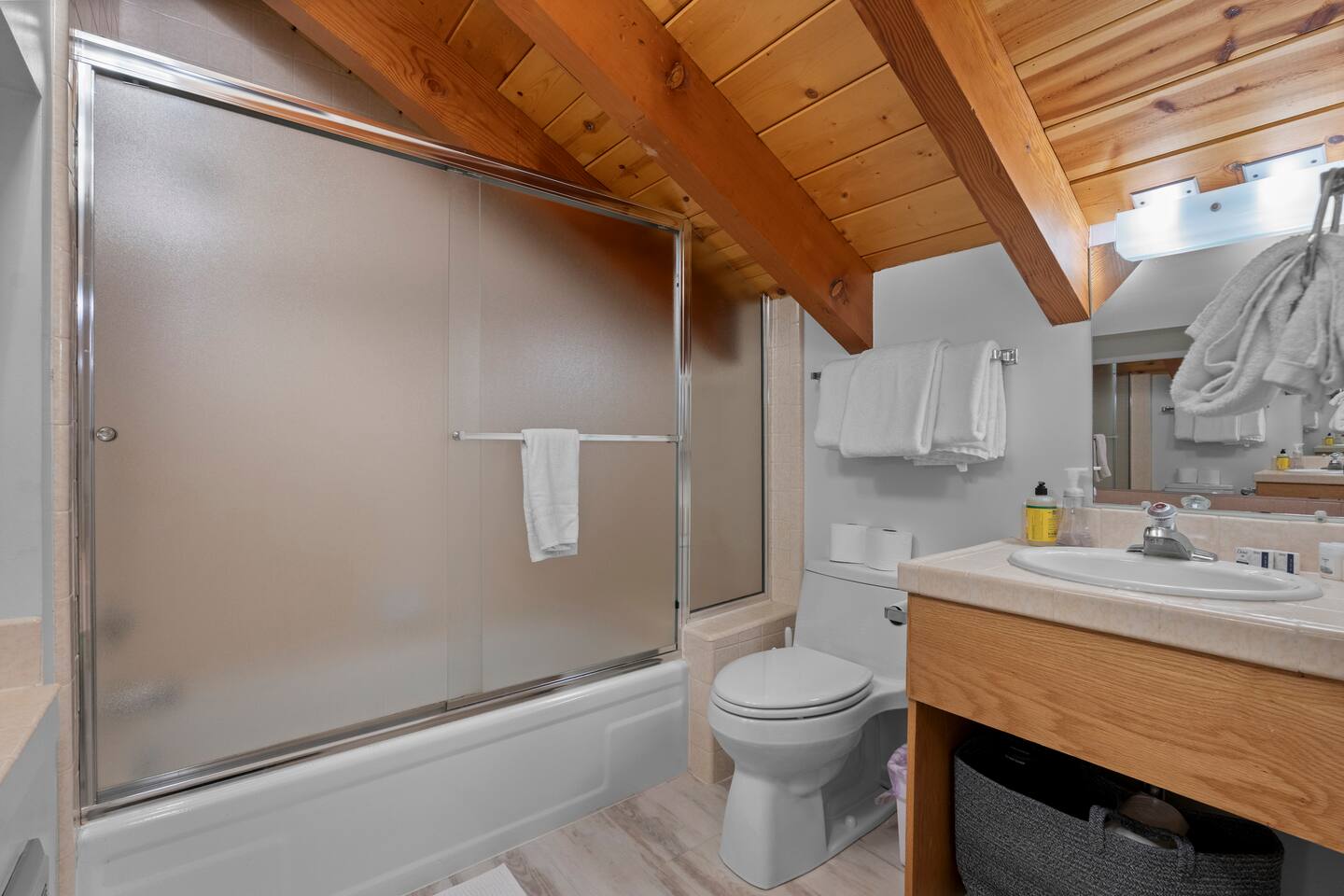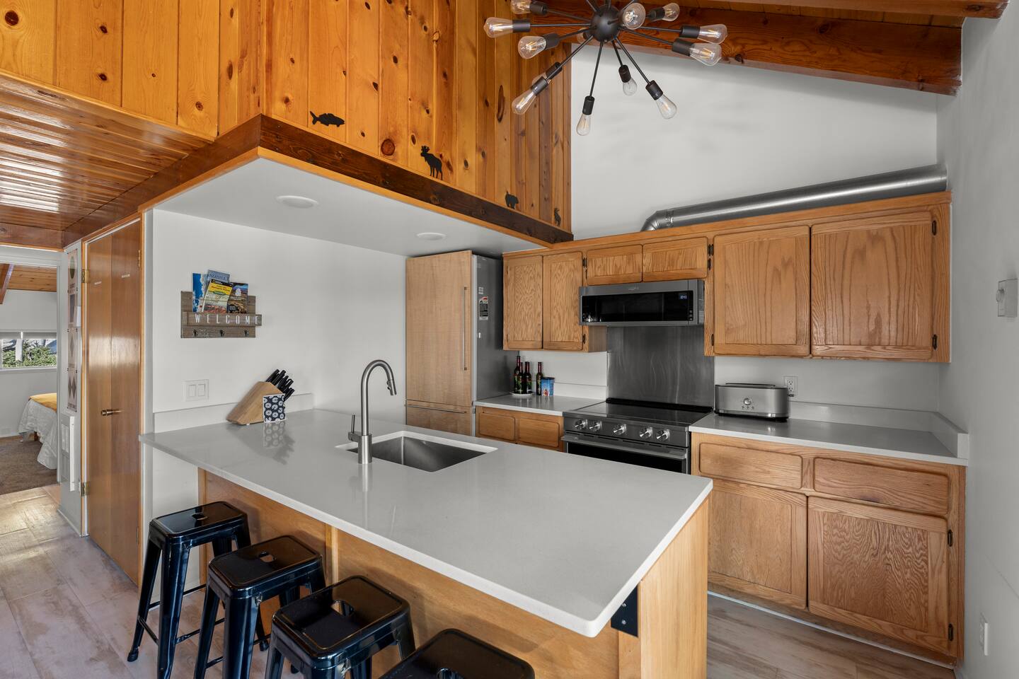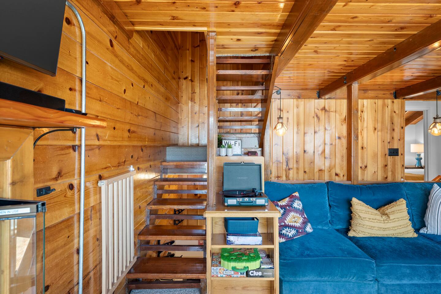 Entrance: Welcome! Step inside on the ground level and head up the quarter-turn staircase. You'll find convenient storage along the way for your shoes, ski gear, and other belongings. Main Level: Relax in the cozy living room with a huge Lovesac couch and fireplace (Electric converted). Four large windows offer stunning mountain views, and a balcony provides access to crisp mountain air. Bring and enjoy your favorite vinyl on the record player, or browse our selection. A mounted 4K TV is ready for your viewing pleasure. The kitchen features modern appliances and a newly installed large island. The master bedroom includes a king-size bed and a smart TV, while the bunk room, furnished with two bunk beds and a smart TV, is perfect for children. The main level also offers a convenient split bathroom layout, with the sink and mirror in a separate area from the toilet and bath/shower. This allows for multiple guests to get ready simultaneously, making mornings a breeze! Upper-Level Loft: Enjoy a unique and cozy loft with a comfortable queen-size bed and a private full-size bathroom. The loft's warm wood paneling and architectural details create a charming feel. Enjoy natural light through the upper windows and a peaceful ambiance. The private bathroom features a clean and well-lit design with a shower/tub combination, perfect for unwinding after a day of adventures. Ample towels and complimentary toiletries are provided for your comfort and convenience. Good to Know: - Drip coffee maker provided. Bring your own coffee/ingredients. A coffee shop and convenience store are conveniently located across the street, within walking distance. - Installed Baby gates at both stairs. - Keyless entry for a hassle-free check-in. - Wifi. - Parking passes for 2 vehicles. - Community Washer and Dryer located near the unit. - Check-in (4:00 PM - 10:00 PM) and check-out (10:00 AM). - Smoke-free property. - No Pets. SUMMARY: Sleeping: King Bed (1) Queen bed (1) Bunk beds (2) Living: Private balcony Living Room with Mountain Views Fully equipped kitchen with updated appliances 3 Smart TVs Free WiFi Board games Vinyl Record Player Large Lovesac Couch Essentials: Heating Linens & towels Basic toiletries Community laundry facility near the unit Important Notes: 4WD sometimes needed in winter No A/C ( Unit has multiple plug-in fans ) Stairs required; multi-level unit Brian Head Town business license number: BL-25044 Approved maximum occupancy: 5 Designated number of parking spaces: 42